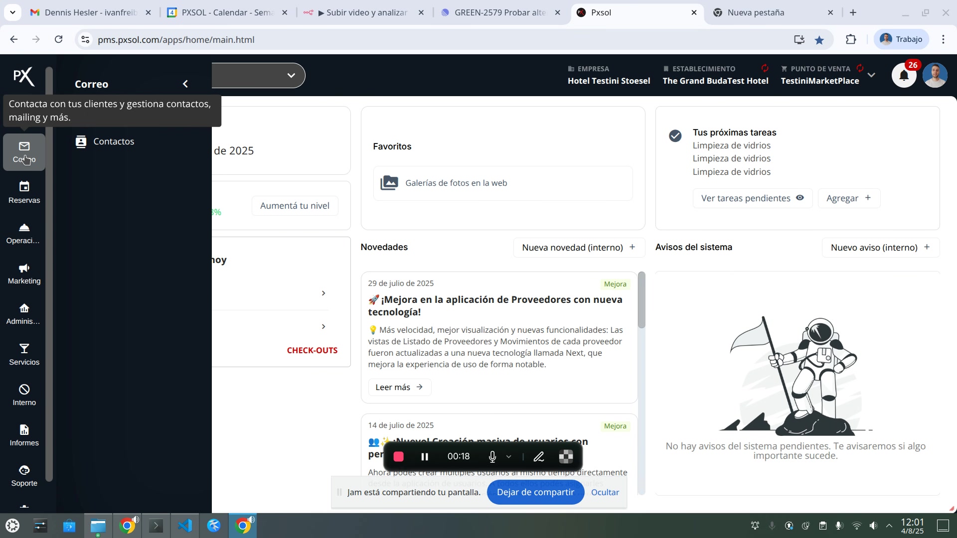 - Desde el menú lateral izquierdo, seleccionar la opción “Correo”.