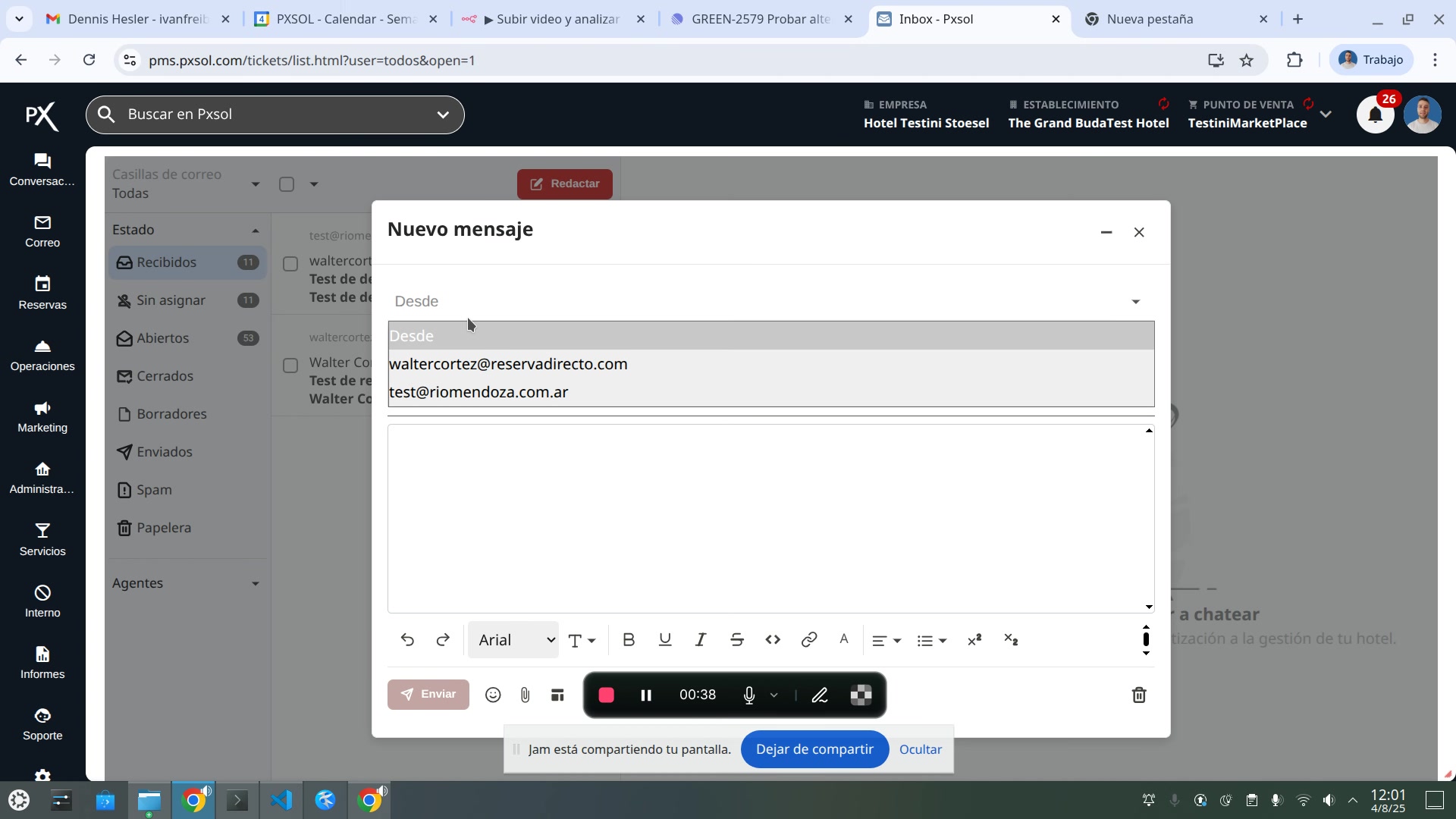 - En el campo “Desde”, seleccionar la cuenta de correo que se utilizará como remitente.