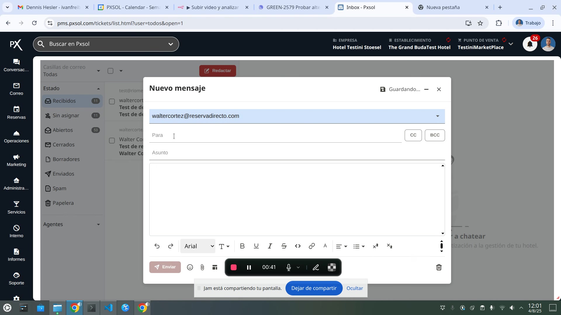 - Escribir el contenido del mensaje en el cuadro de texto principal.