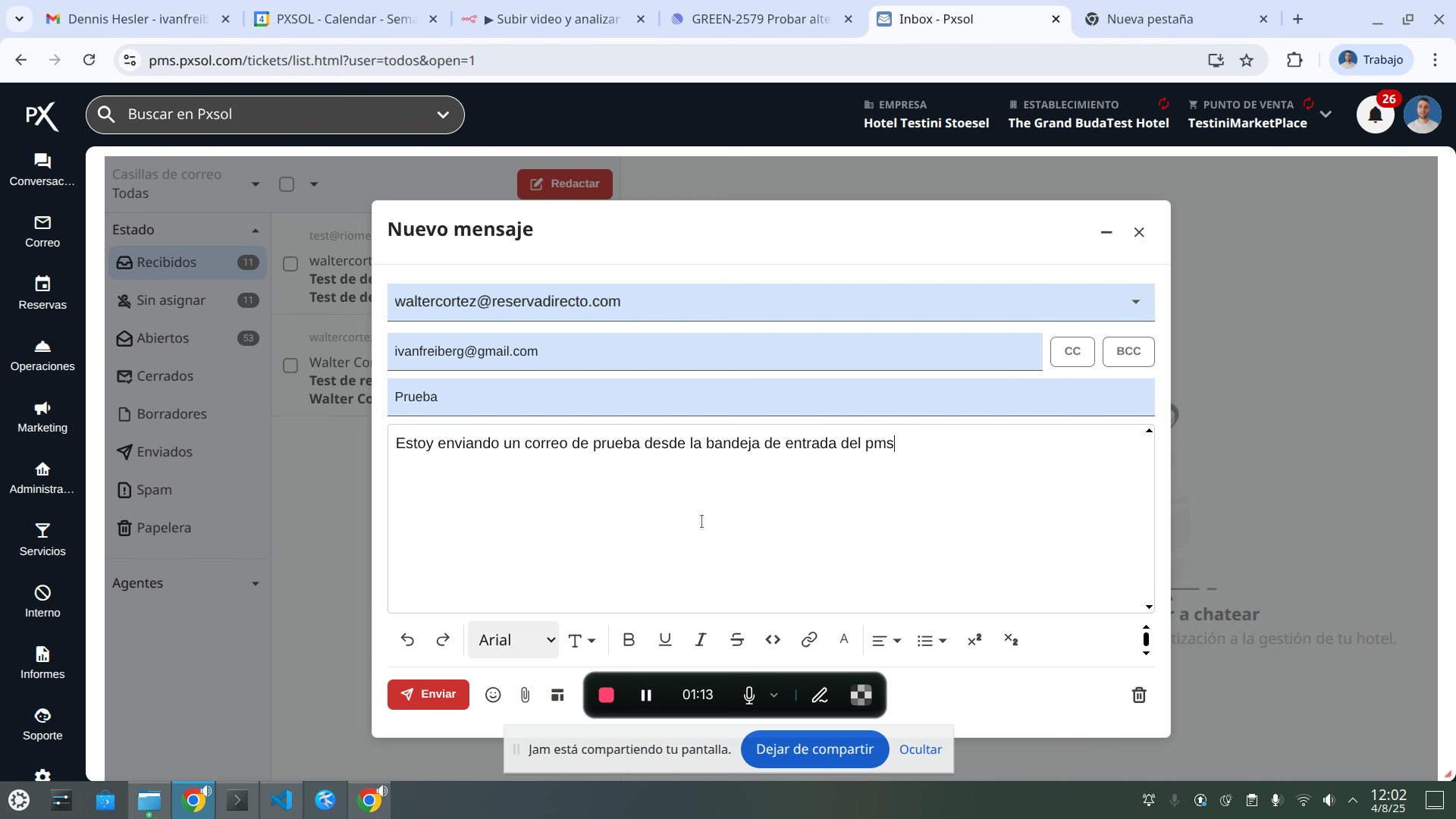 - Presionar el botón rojo “Redactar” para abrir el editor de un nuevo mensaje.